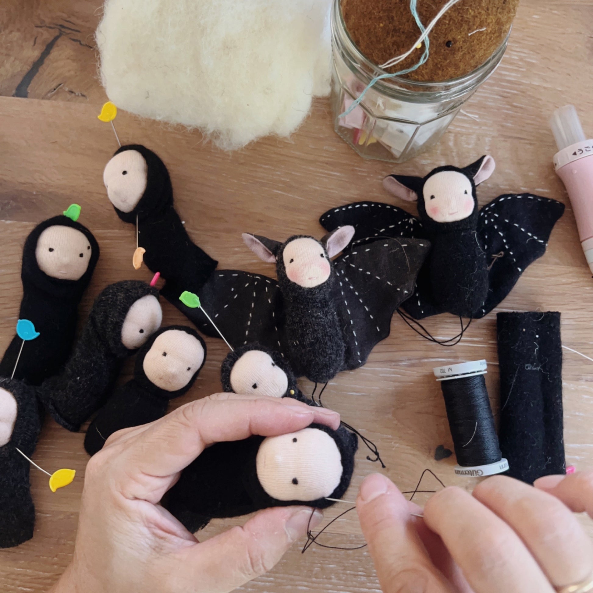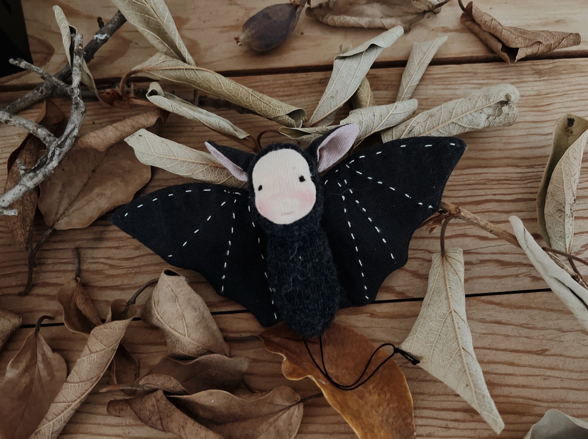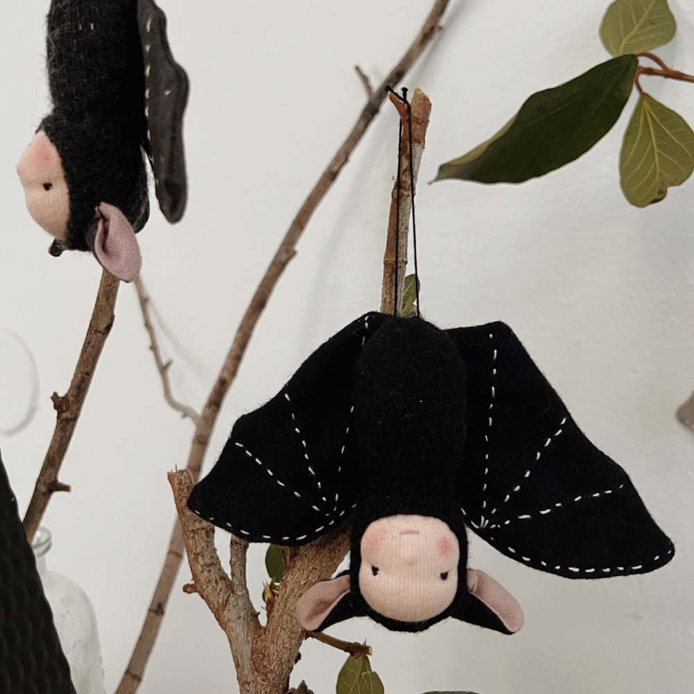 Introducing our Waldorf-Inspired Handcrafted Bat Plush, a delightful and eco-friendly addition to your home decor or child's imaginative play. These charming bats are made from repurposed cashmere, offering a soft and luxurious touch, while the wings feature delicate stitched details. Perfect for hanging or displaying, these bats are available in both black and charcoal gray.