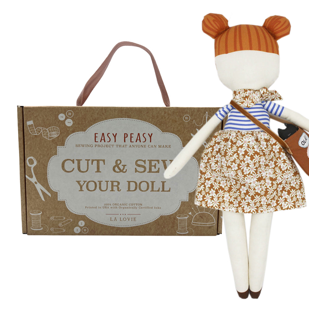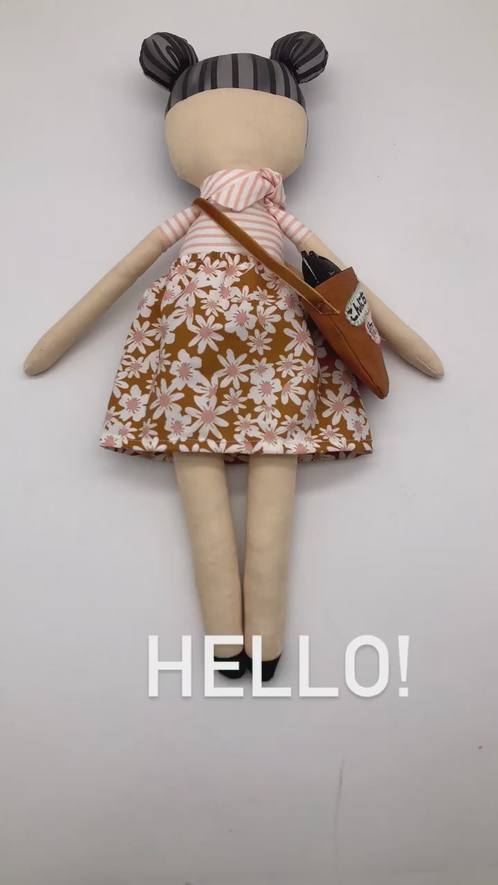For this project, you will sew a doll skirt, a tote bag, a scarf and a cat. Crafting time will take 2 - 4 hours. The doll's face is intentionally left blank, allowing you to draw or embroider your own unique design. This feature lets you personalize the doll, giving it a one-of-a-kind personality that reflects your creativity.