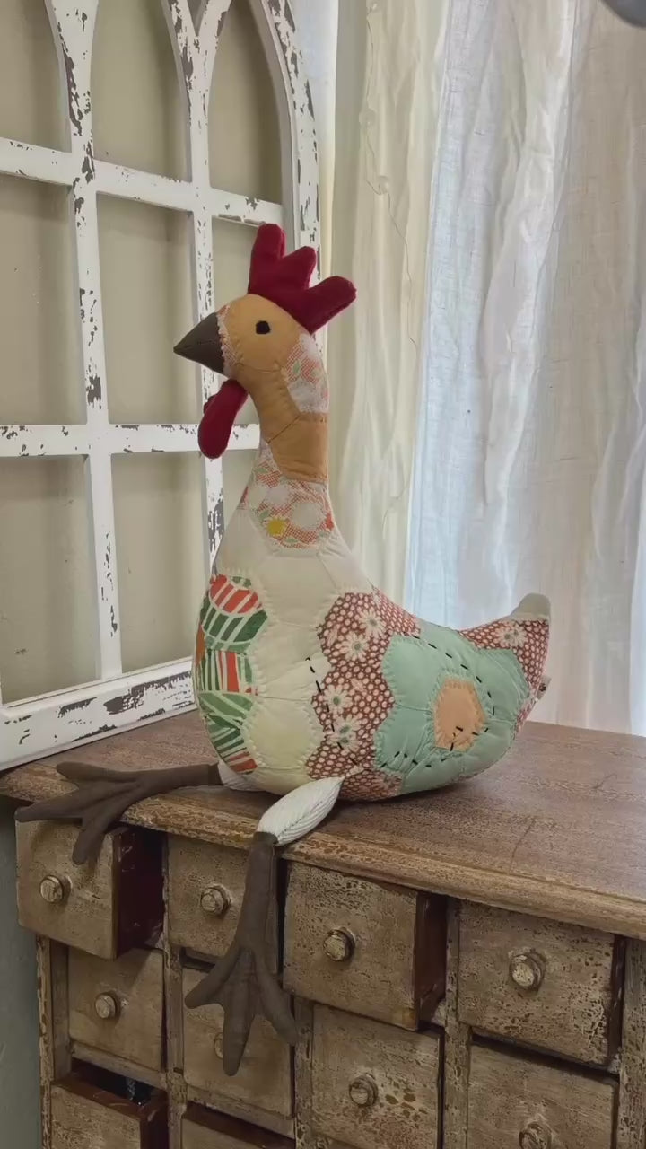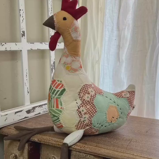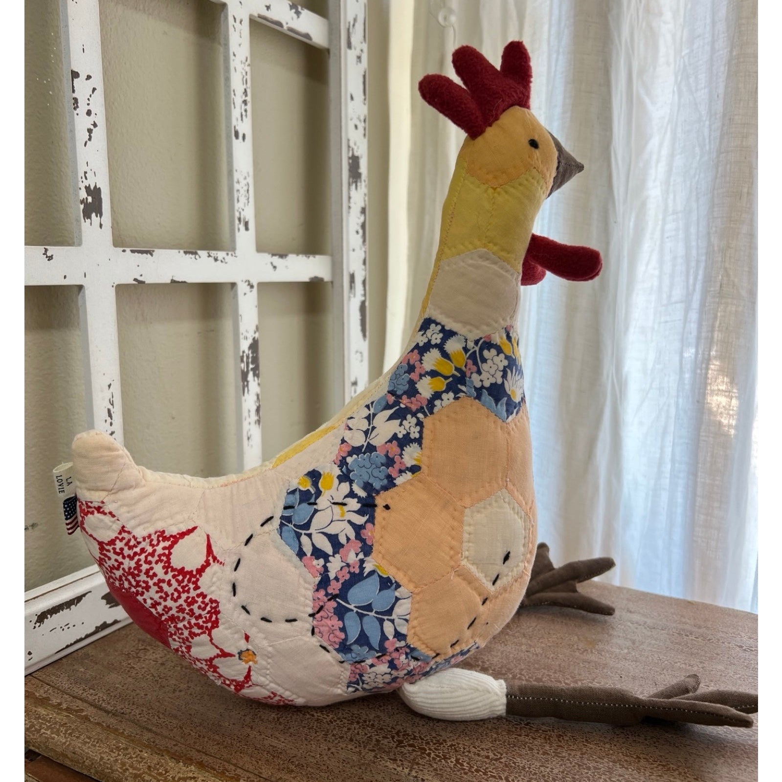 Please note: this chicken is handmade from an vintage quilt (1930s–40s). The fabrics may show gentle wear, fading, or small imperfections that come naturally with age. These details are part of the quilt’s history and add to the one-of-a-kind charm of each piece.