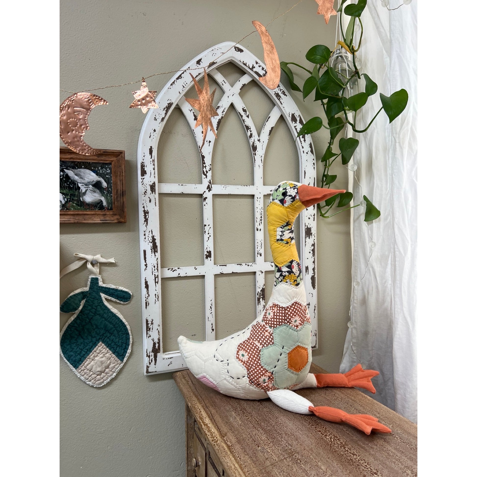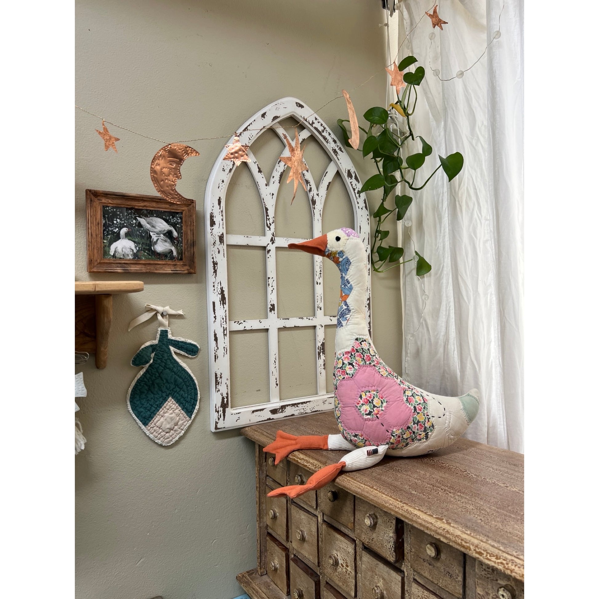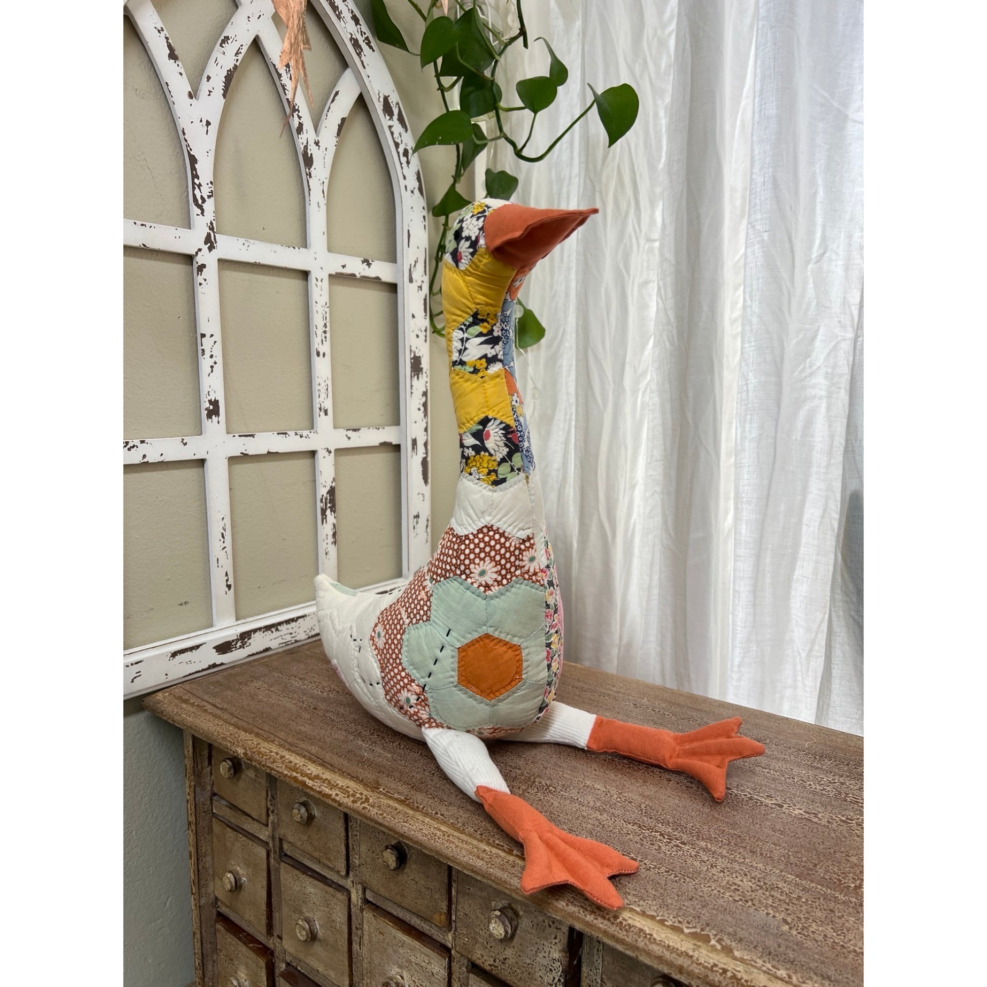 Please note: this goose is handmade from an vintage quilt (1930s–40s). The fabrics may show gentle wear, fading, or small imperfections that come naturally with age. These details are part of the quilt’s history and add to the one-of-a-kind charm of each piece.